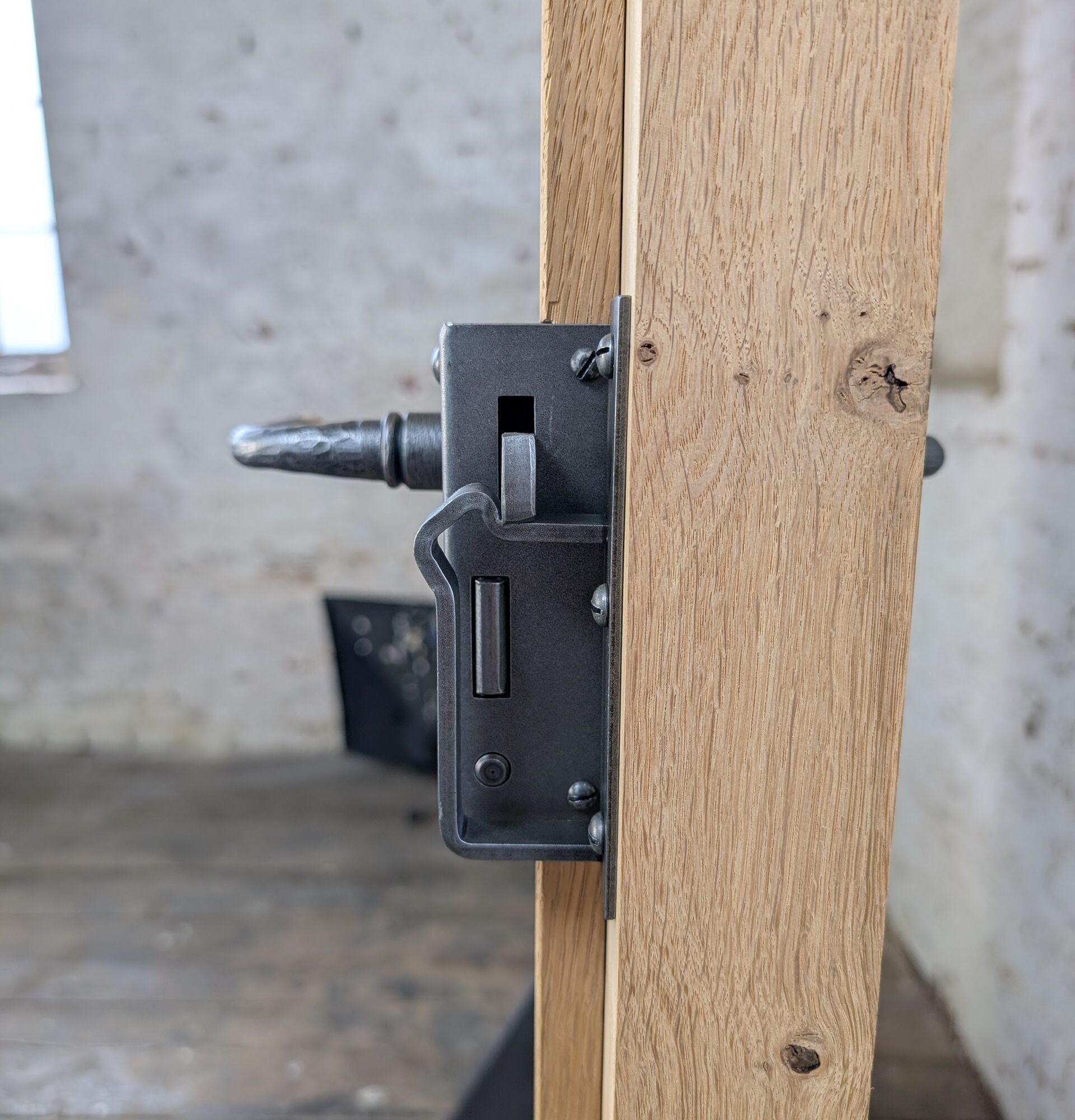 Die Tür auf den Bildern hat ein Maß von 216 × 90 cm inkl. Blockrahmen. Die Maße verstehen sich als Beispiel, jede Tür wird individuell nach Maß gefertigt und auf die jeweiligen baulichen Gegebenheiten abgestimmt.