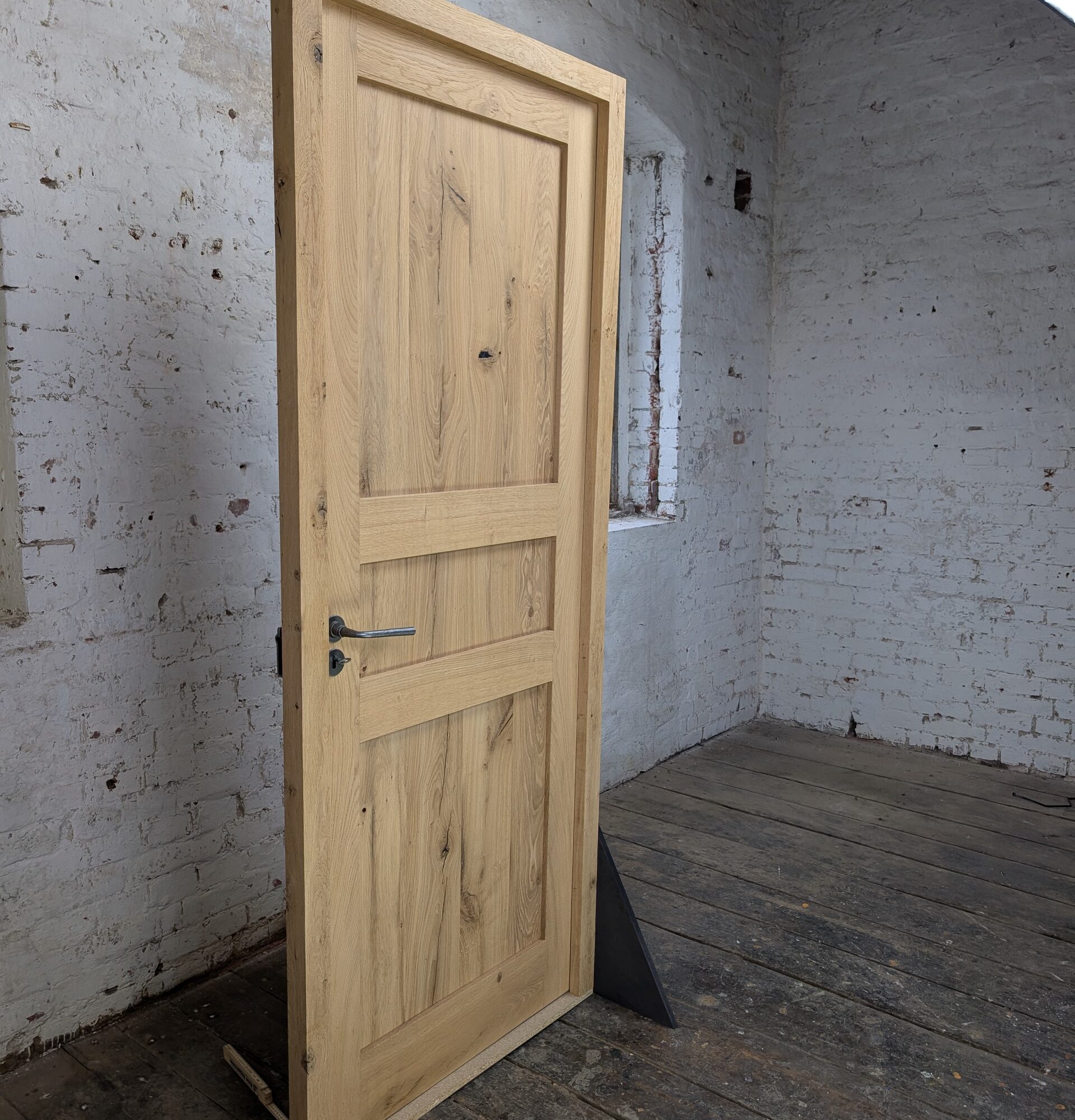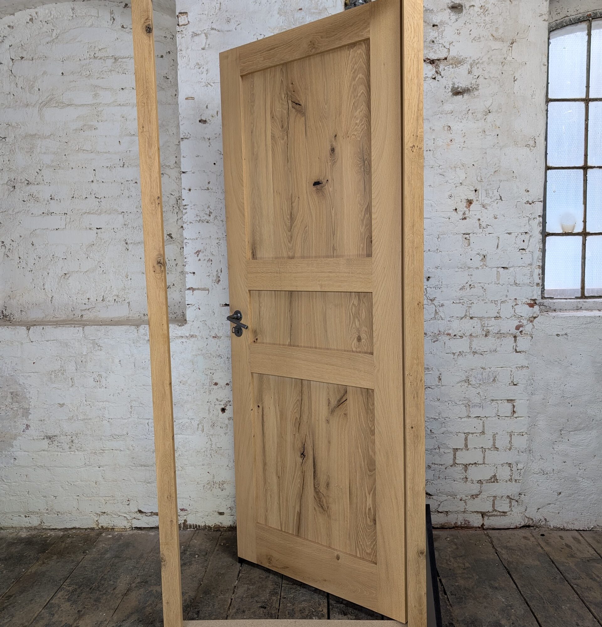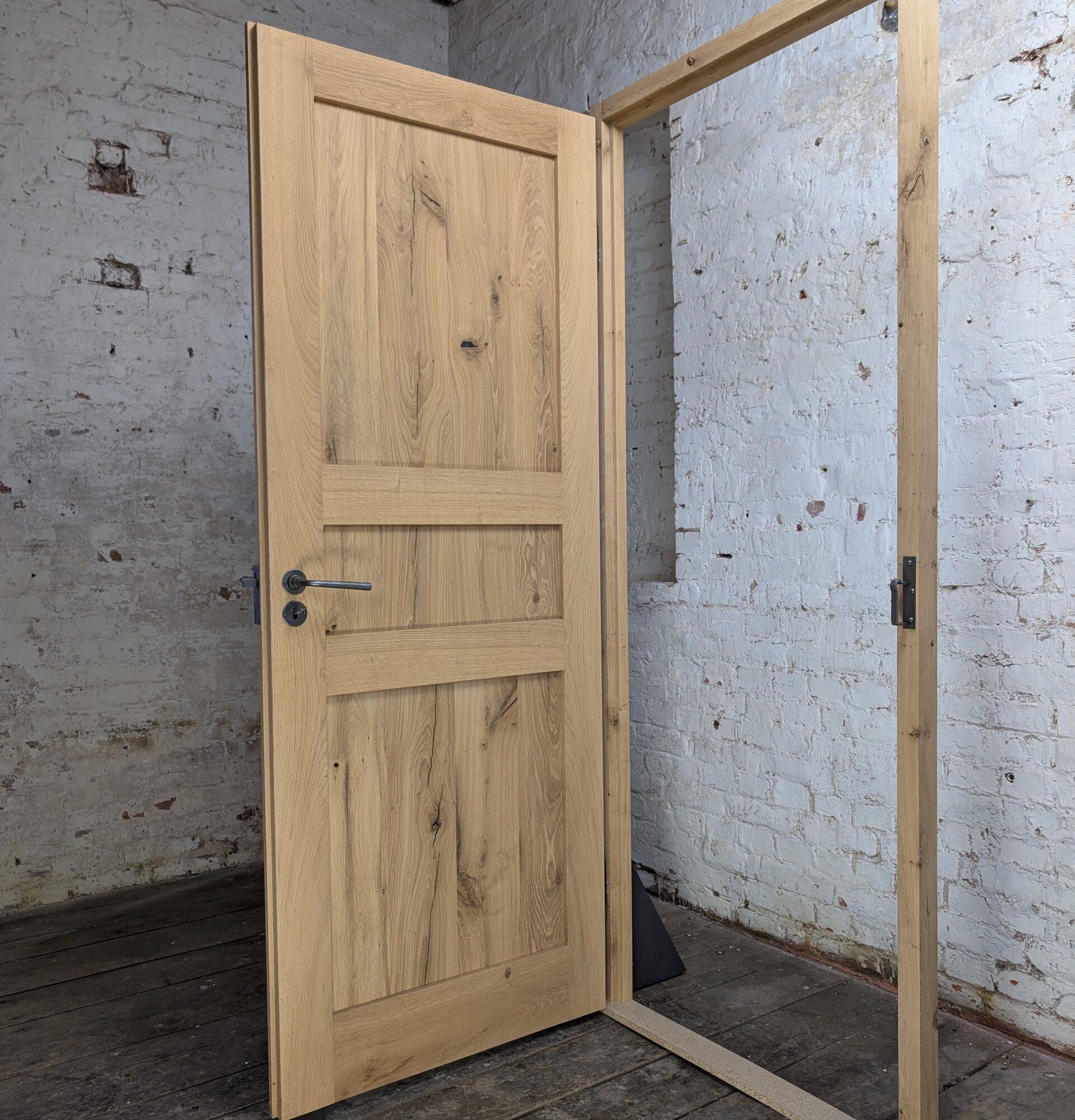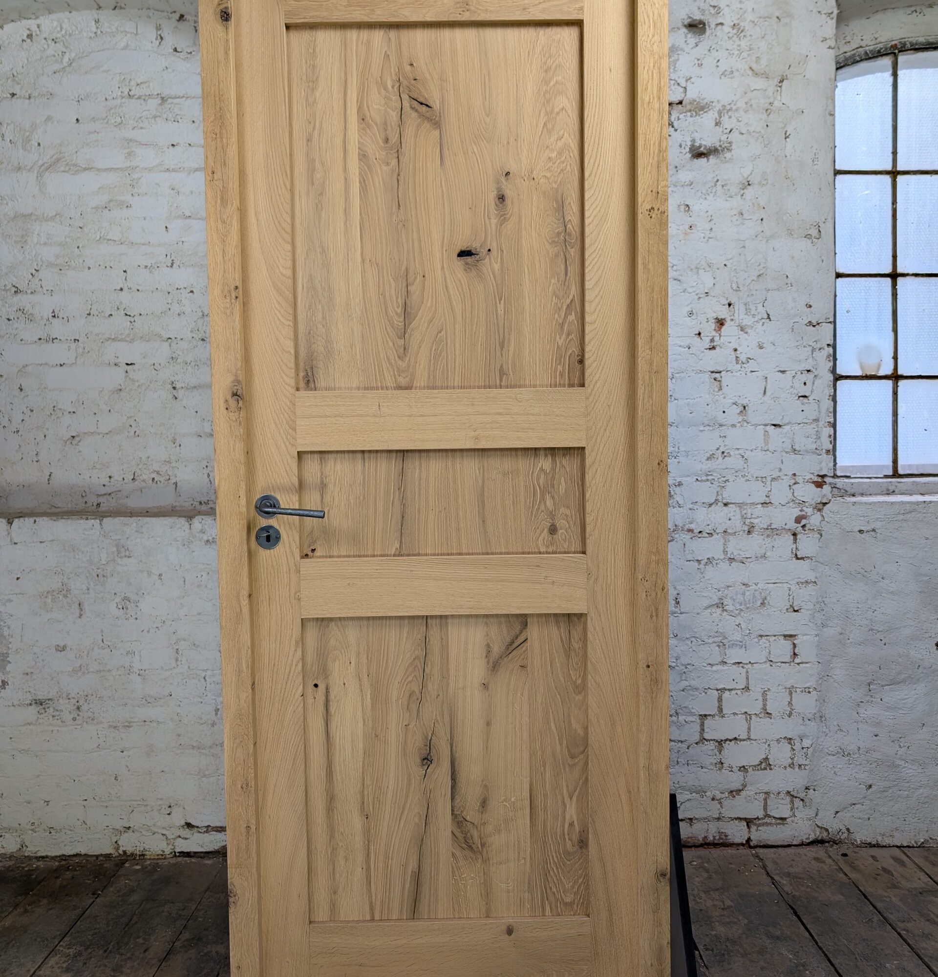 Eine Zimmertür für alle, die altes Eichenholz mögen, aber eine ruhigere Oberfläche suchen – reduziert, handwerklich und langlebig.